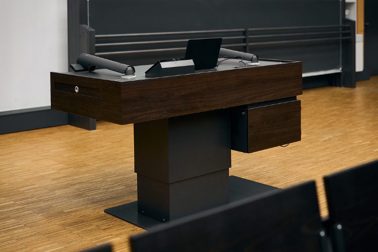 Flexible AV-Technik: Das Pult mit Komponenten lässt sich versetzen. Zum Beispiel für Konzerte statt Vorlesung.