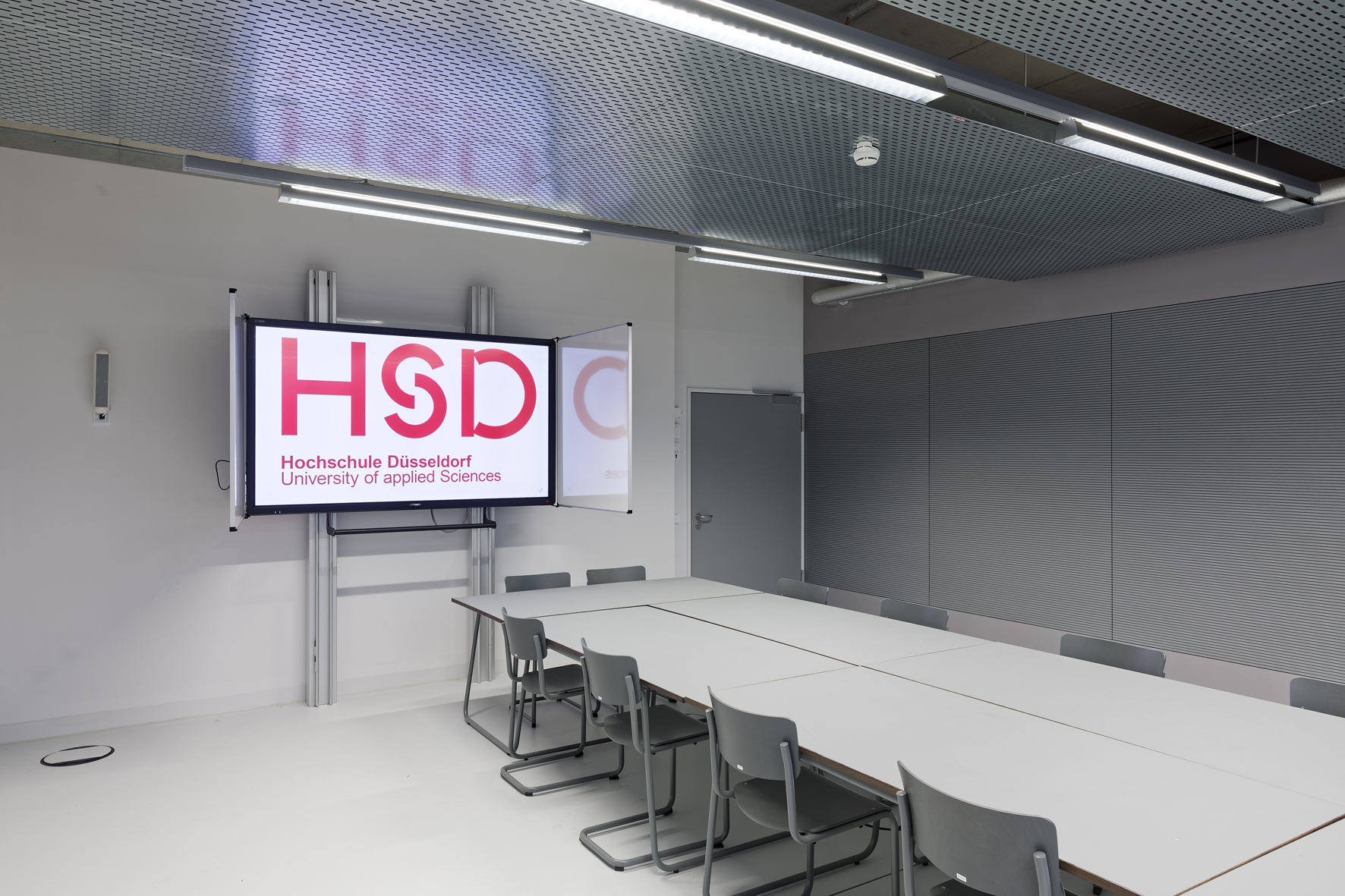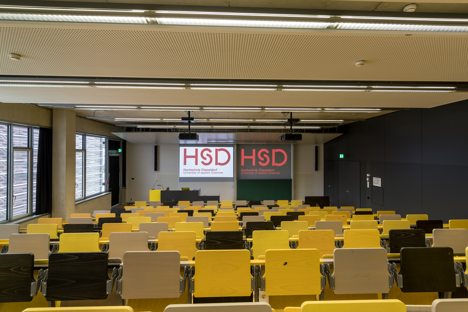 „Hervorragende Technik macht unsere Hörsäle und Seminarräume so beliebt. Um das Augenmerk auf die Präsentationsinhalte zu lenken, wurde die sichtbare Technik auf das Wesentliche reduziert. Standardisierte Schnittstellen und eine zentrale Steuerung erleichtern die Bedienung der Medientechnik, besonders für die Dozierenden. Schon bei der Planung hat die Hochschule Düsseldorf sehr viel Wert auf die enge Verzahnung von IT und Medientechnik gelegt. Dies spiegelt sich insbesondere darin wieder, dass bereits bei der Anschaffung Ressourcen eingespart werden konnten, ohne Einschränkungen für die Nutzer*innen.“ Henning Mohren, CIO und Leiter IT